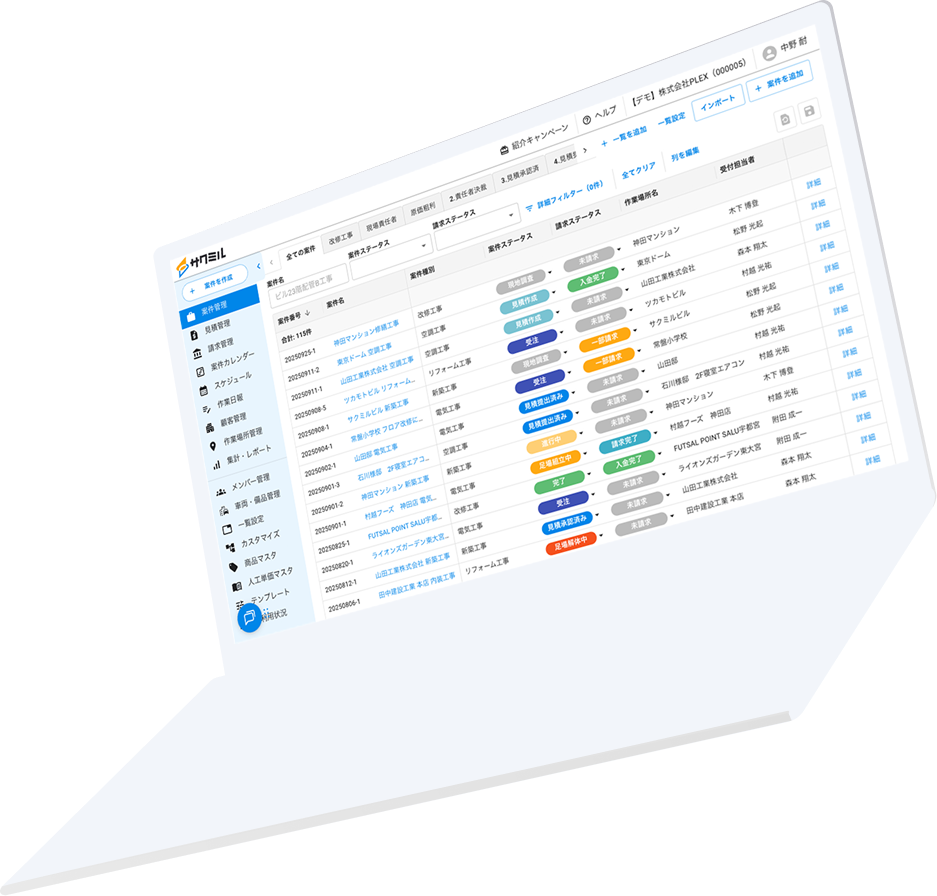 「サクミル」は全ての情報を一元管理し、必要な情報を抽出・加工・検索することで生産性の向上、売上アップ、コスト削減し事業を推進します。