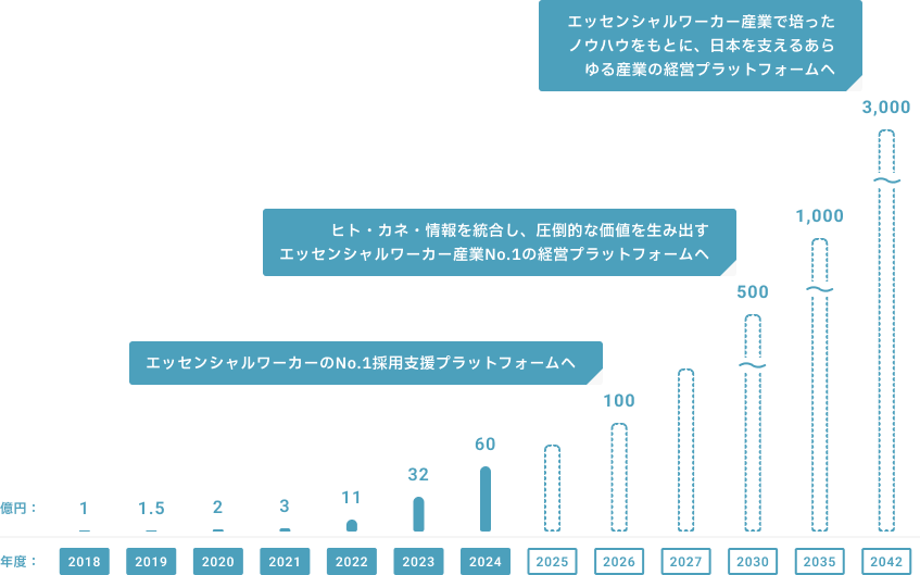 私たちは、2042年に売上3,000億円を目指しています。