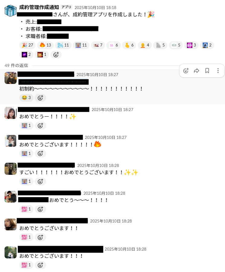 - Slackでのコミュニケーションが活発で、リアルタイムに祝福のメッセージが飛び交うチーム