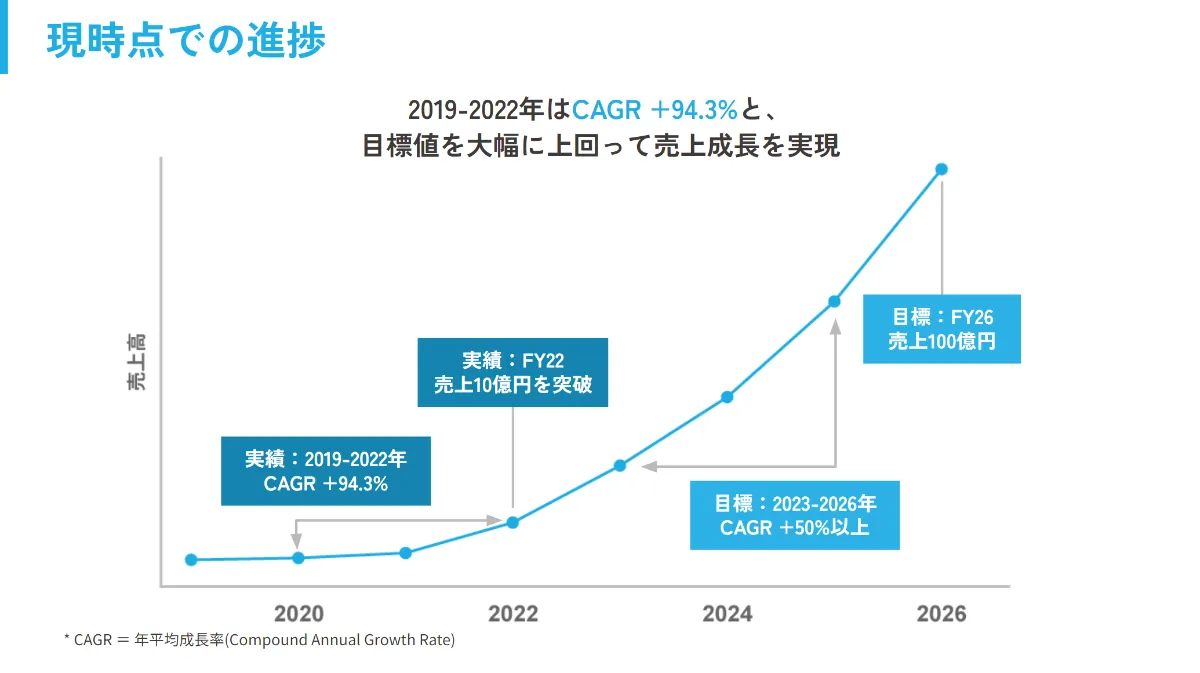 売上高はもうすぐ90億円を上回る見込みで、2026年度には売上高100億円を超える計画です。現状のまま推移すれば100億円に到達する可能性は十分あります。当社は売上と売上総利益がほぼイコールになる事業構造なので、そこで得た収益を次の成長のために積極的に投資していく予定です。